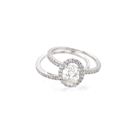 14K White Gold Oval Diamond w/Halo Engagement Ring & Band