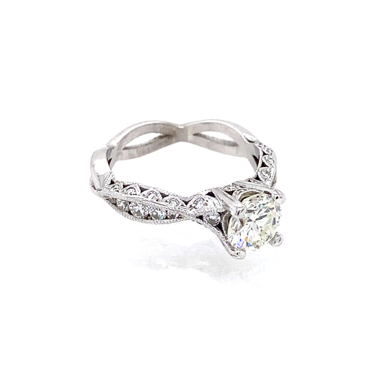 10K White Gold Art Deco Diamond Filagree Engagement Ring