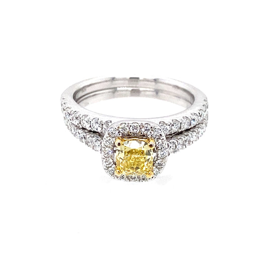 18K White Gold Yellow Cushion Cut Diamond Engagement & Wedding Ring