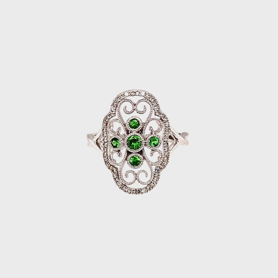 14K White Gold Emerald Fillagree Gemstone Ring