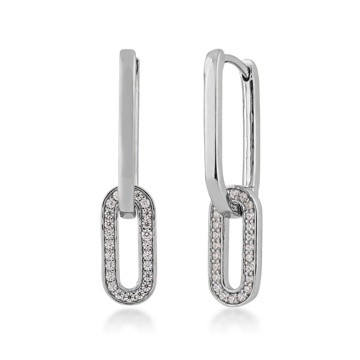 Silver Elegance Cubic Zirconia Dangle Paperclip Earrings